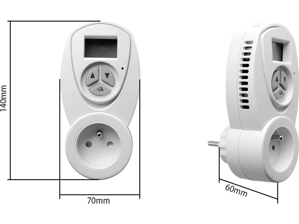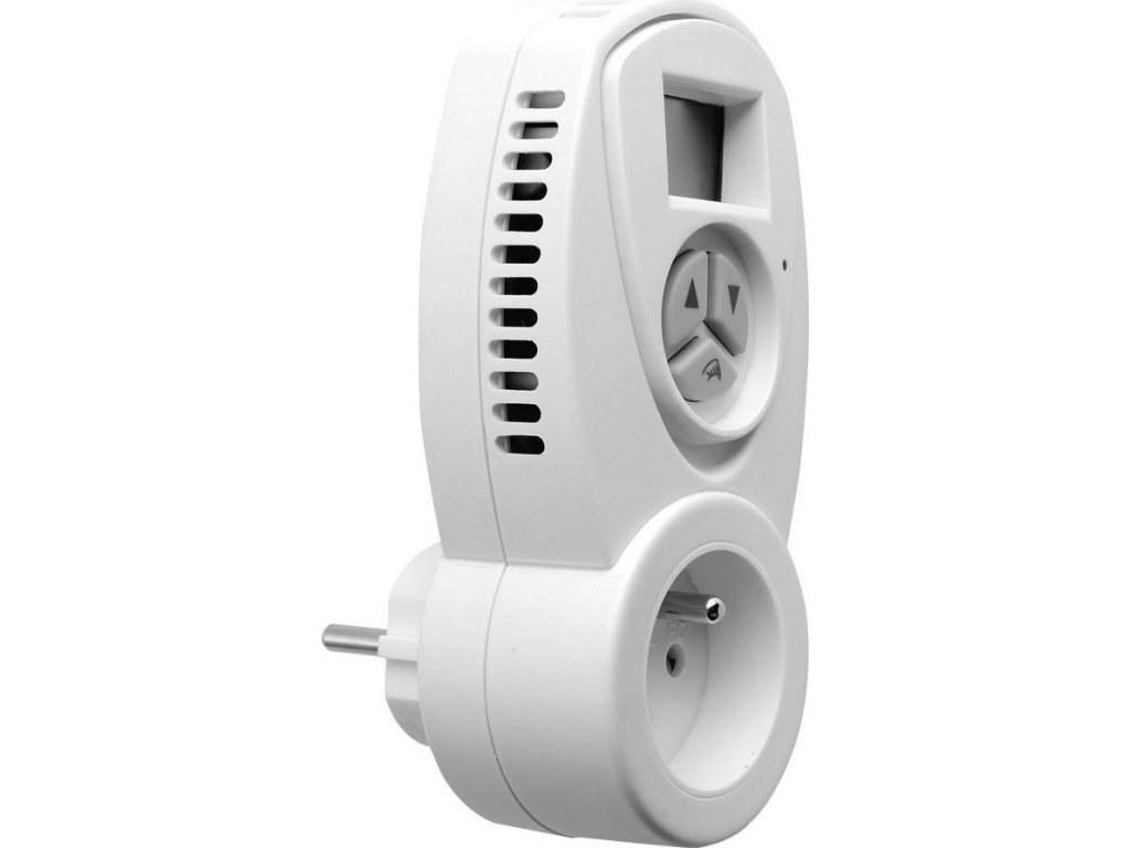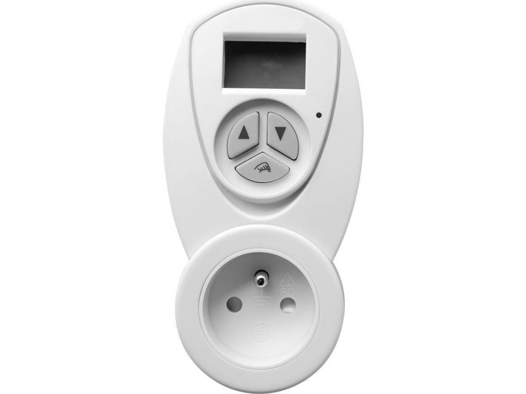 Zásuvkový elektronický termostat s časovým spínačem a protizámrazovou ochranou.