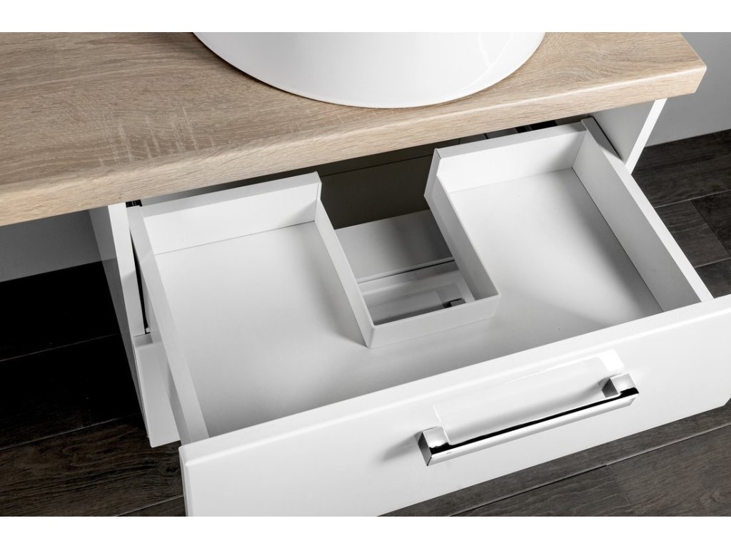Desky pod umyvadlo jsou dodávány bez vyvrtaných otvorů pro baterii a odpad.