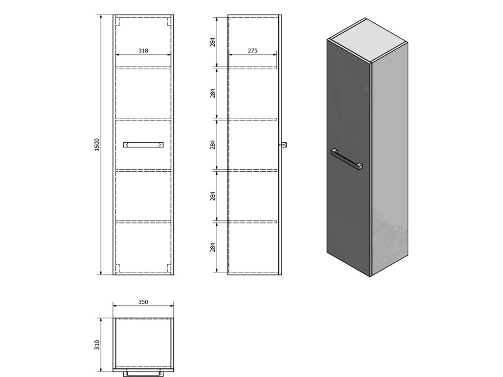 Aqualine VEGA skříňka vysoká 35x150x31cm, levá/pravá, bílá VG150