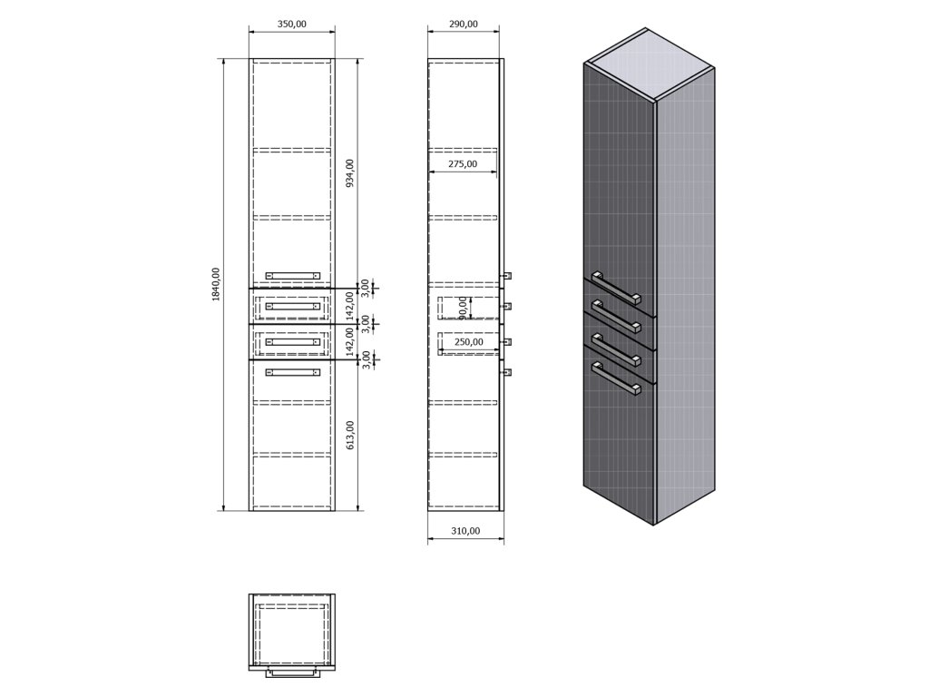 Aqualine VEGA skříňka vysoká 35x184x31cm, bílá VG185