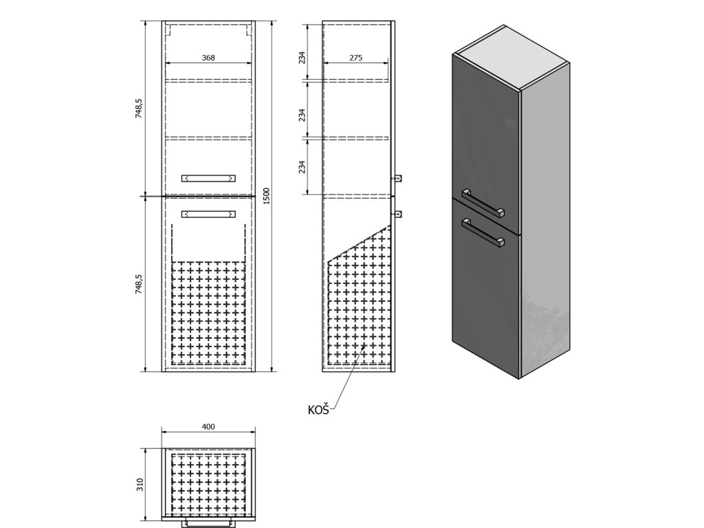 Aqualine VEGA skříňka vysoká s košem, 40x150x31cm, bílá VG160