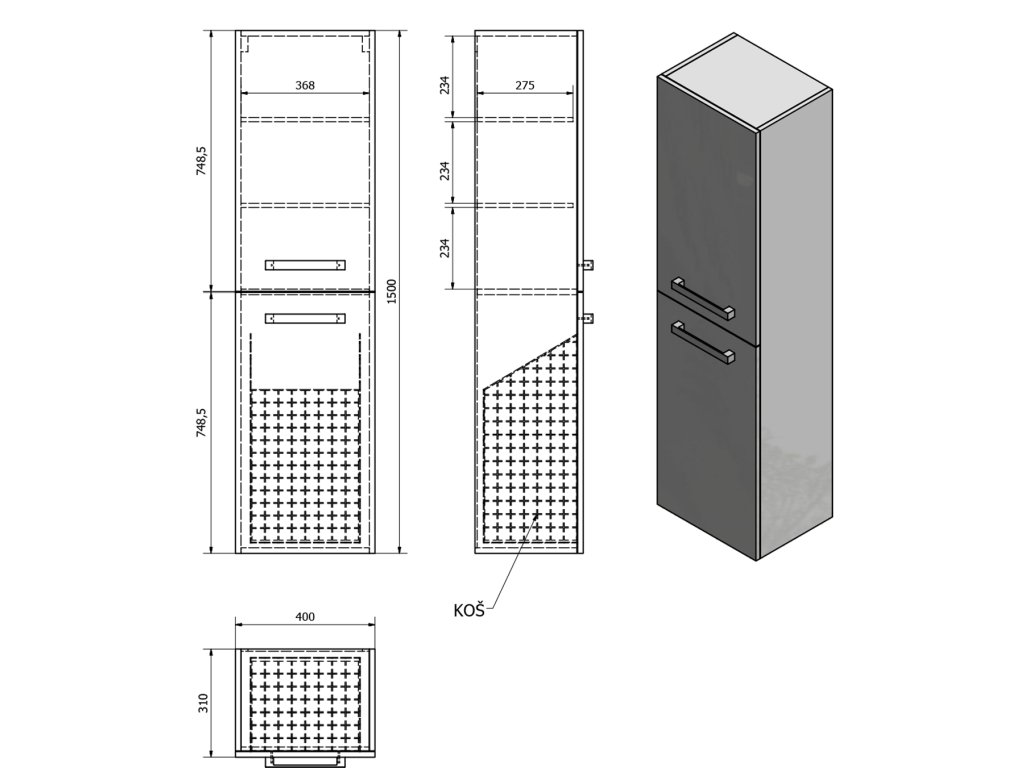 Aqualine VEGA skříňka vysoká s košem, 40x150x31cm, dub platin VG960