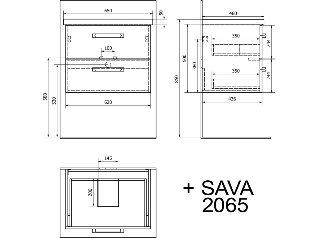 Aqualine VEGA umyvadlová skříňka 62x50x43, 6cm, 2x zásuvka, bílá VG064