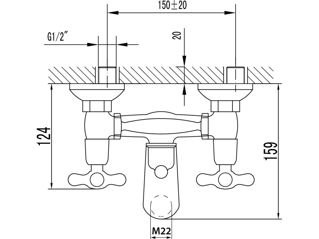 Aqualine VICTORIA nástěnná vanová baterie kompletní, chrom VC10