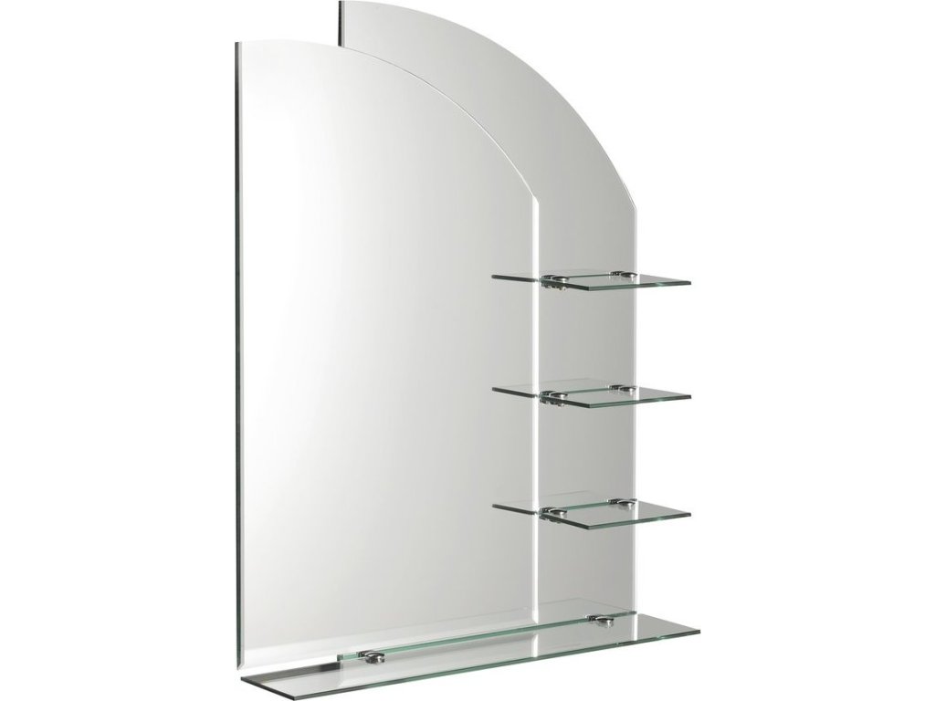 Dvojité zrcadlo se 4 poličkami, zaoblené