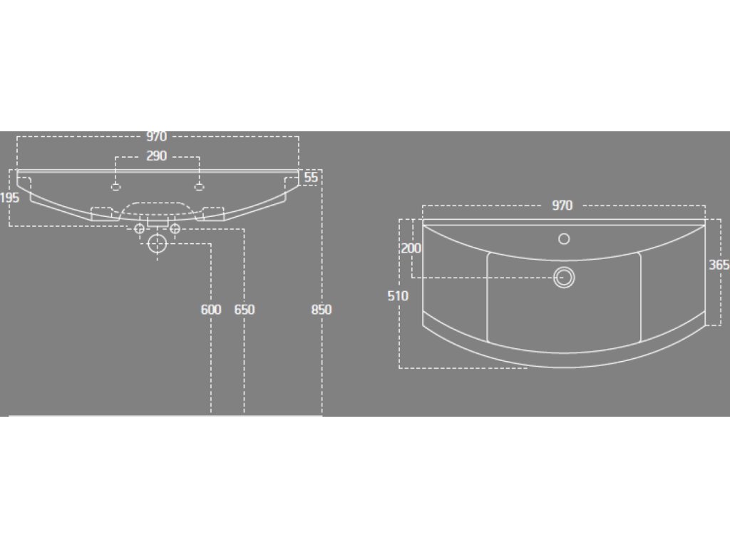 Aqualine ZERO 97 keramické umyvadlo nábytkové 97x51cm, bílá 6095