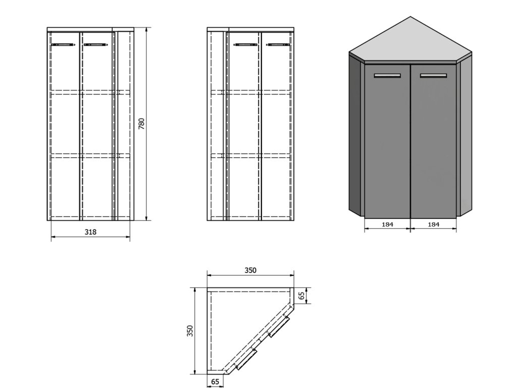 Aqualine ZOJA/KERAMIA FRESH skříňka rohová 35x78x35cm, bílá 50321