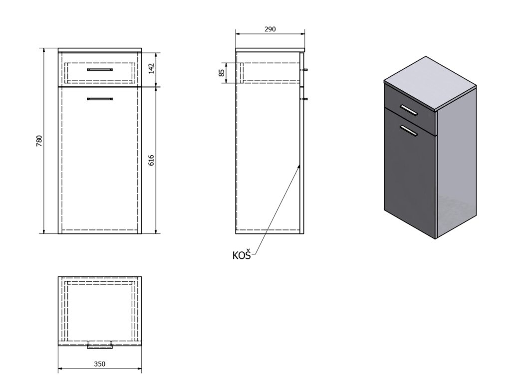 Speciální možnosti: | Koš na prádlo: součástí, Nutná montáž |
