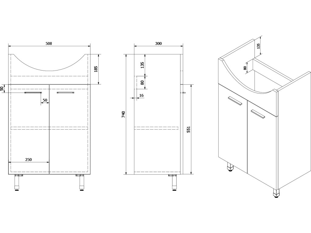 Aqualine ZOJA umyvadlová skříňka 50, 5x74x30cm, bílá 51055A