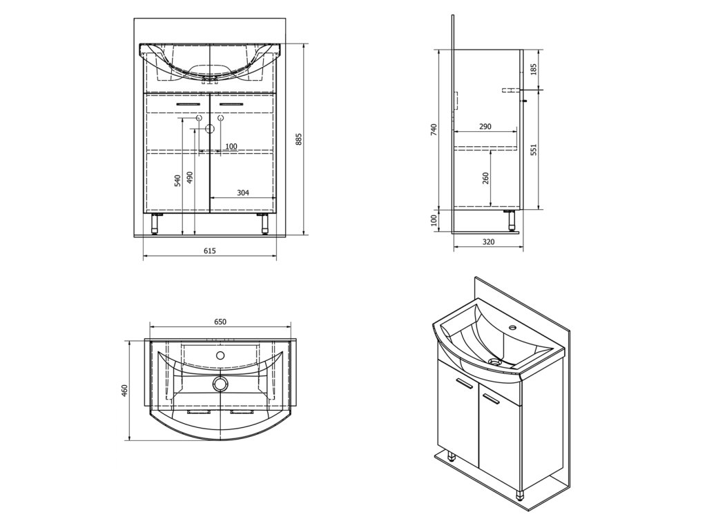 Aqualine ZOJA umyvadlová skříňka 61, 5x74x32, 5cm, dub platin, 2x dvířka 51163