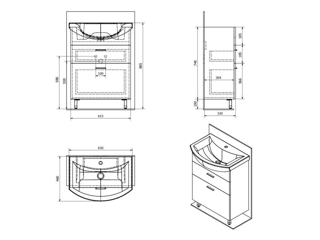 Aqualine ZOJA umyvadlová skříňka šuplíková 61, 5x74x32cm, bílá 51061A