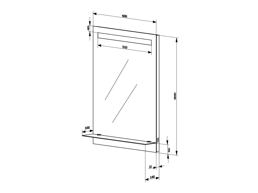 Aqualine Zrcadlo s LED osvětlením a policí 60x80cm, kolébkový vypínač ATH53