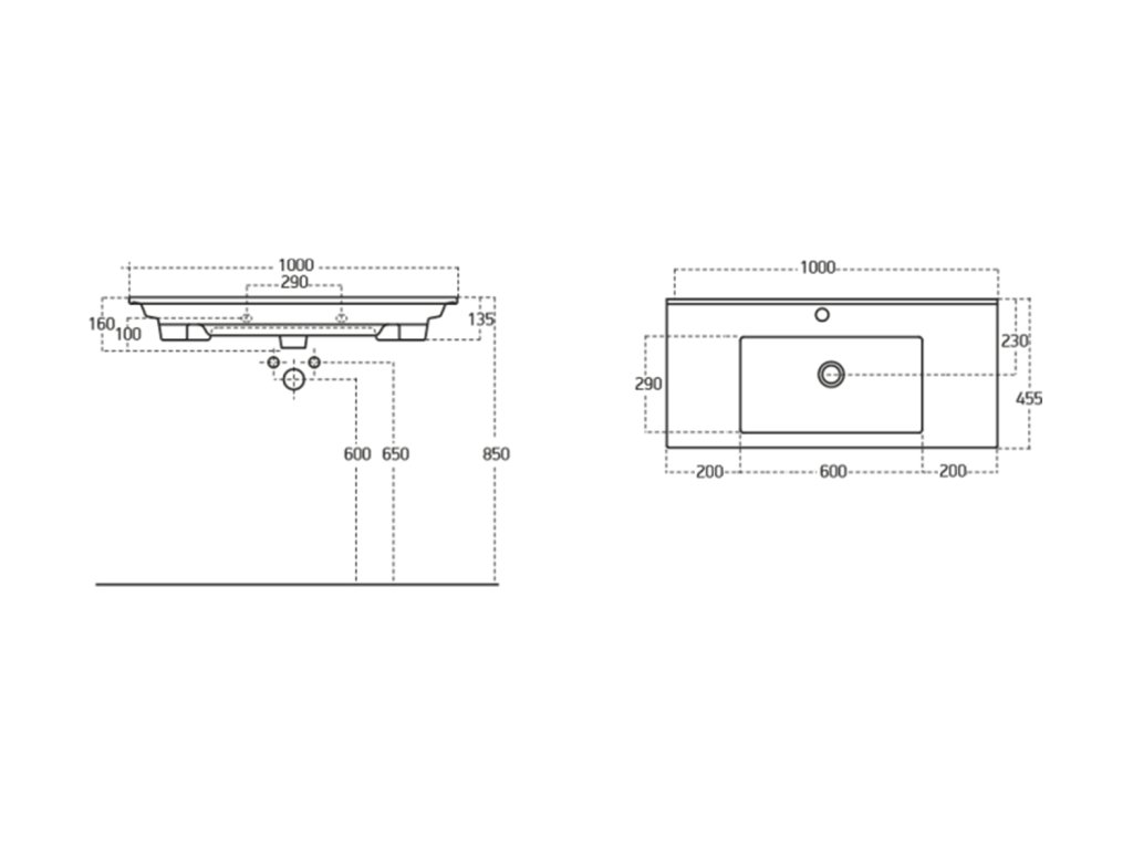 Aqualine ZUNO 100 keramické umyvadlo nábytkové 100x45cm, bílá 9100