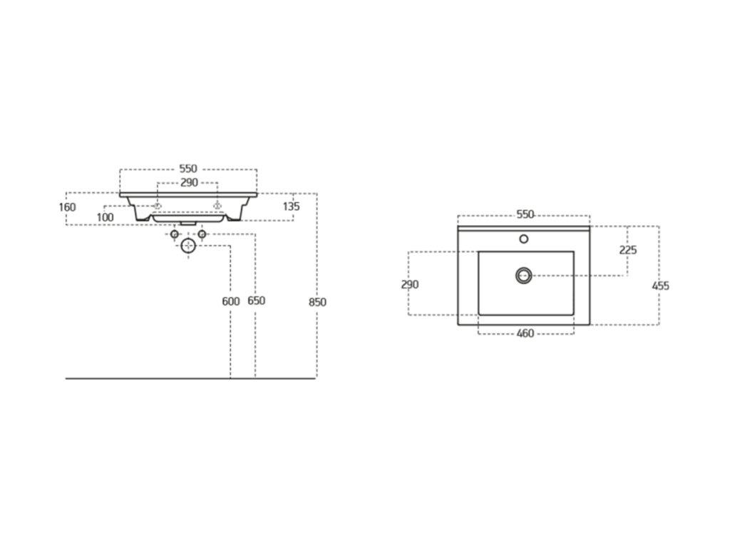 Aqualine ZUNO 55 keramické umyvadlo nábytkové 55x45cm, bílá 9055