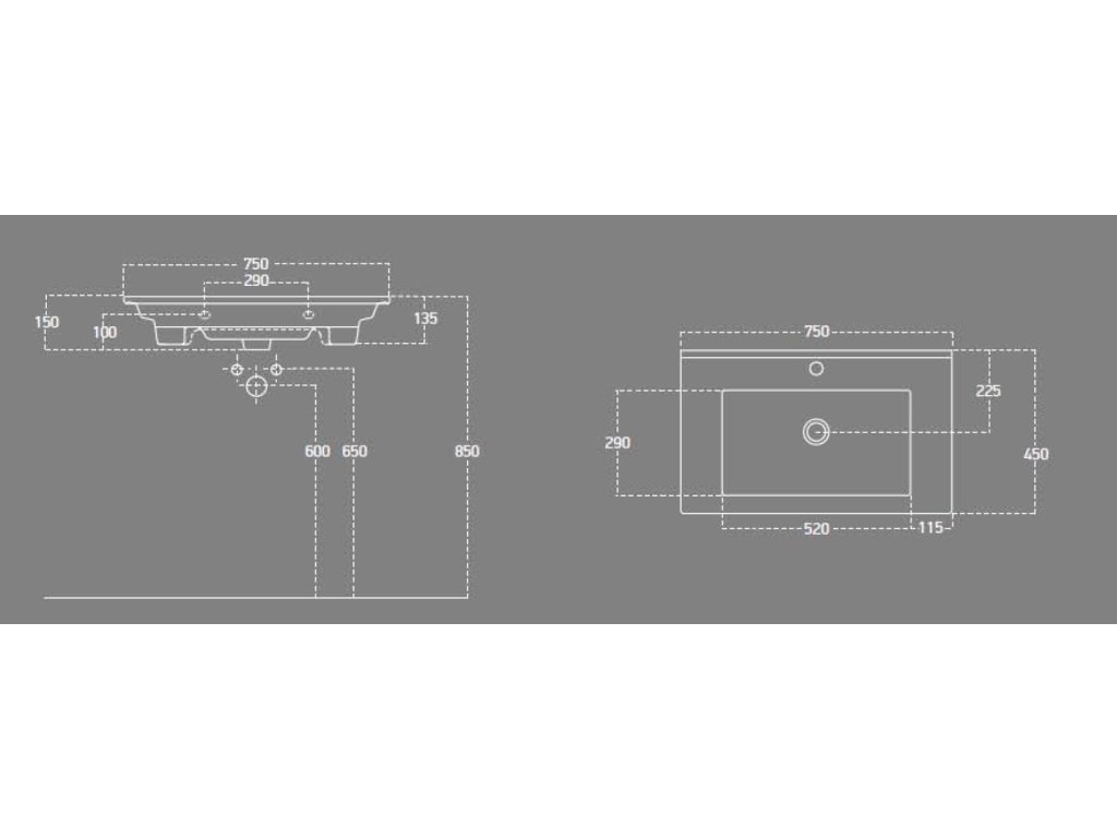 Aqualine ZUNO 75 keramické umyvadlo nábytkové 75x45cm, bílá 9075