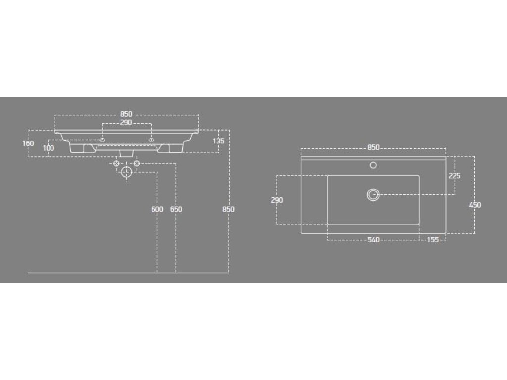 Aqualine ZUNO 85 keramické umyvadlo nábytkové 85x45cm, bílá 9085