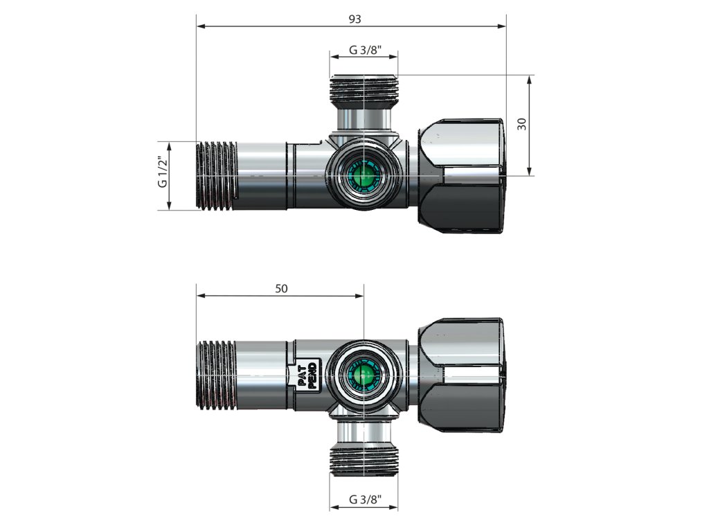 Arco ARCO kombinovaný rohový ventil A-80 se dvěma vývody 1/2"x3/8"x3/8", anticalc CQ4102