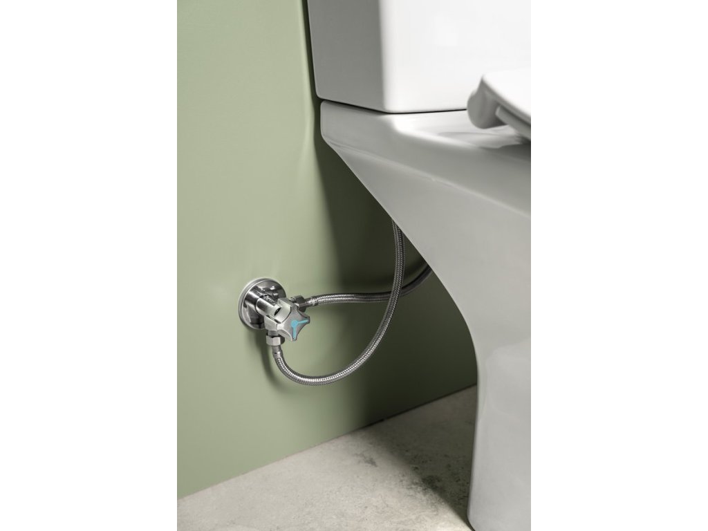 Rohový kombinovaný ventil A-80 obsahuje dva vývody vody, které lze uzavírat a otevírat nezávisle na sobě. Oba vývody je také možné současně otevřít i zavřít.