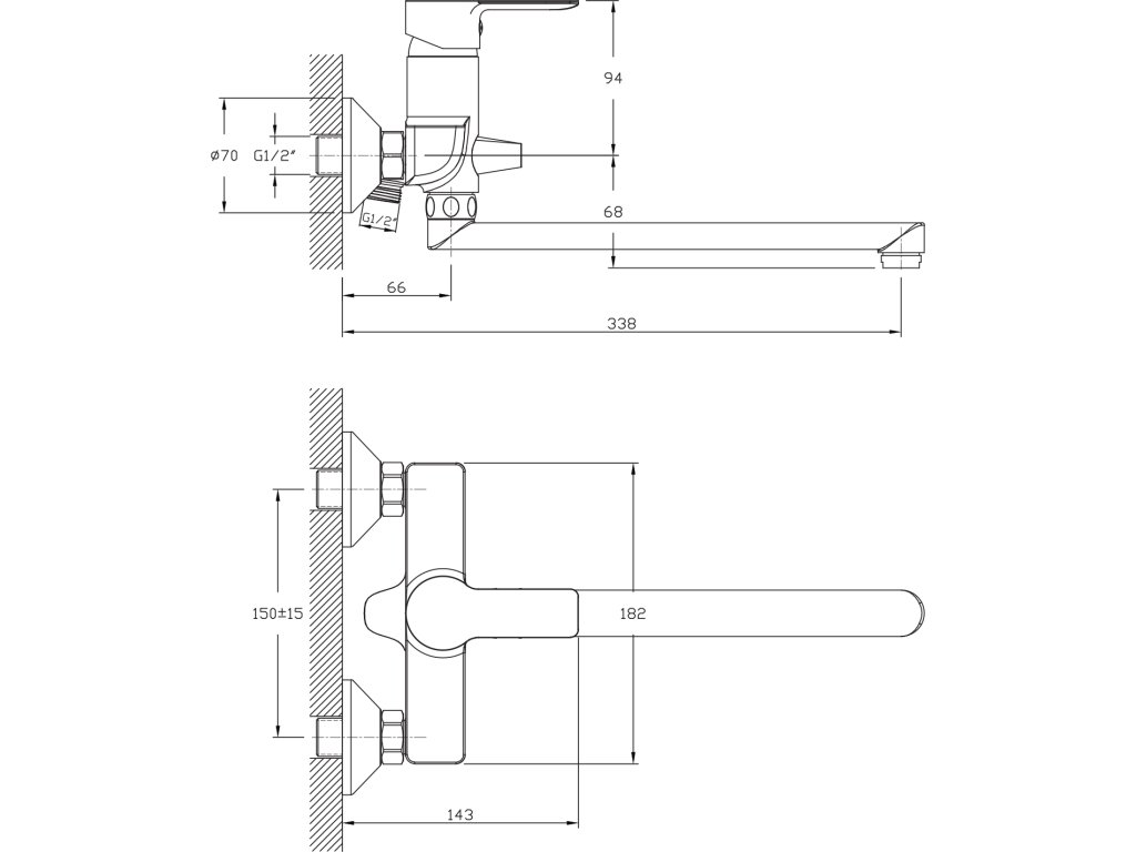 Bruckner BARON nástěnná umyvadlová/vanová baterie, chrom 612.025.1