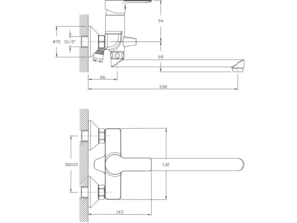 Bruckner BARON nástěnná umyvadlová/vanová baterie, rozteč 100mm, chrom 612.035.1