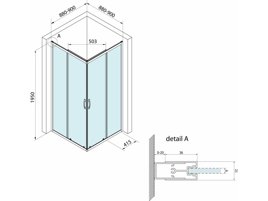 Bruckner BORG čtvercová sprchová zástěna 900x900x1950 mm, čiré sklo 751.190.1