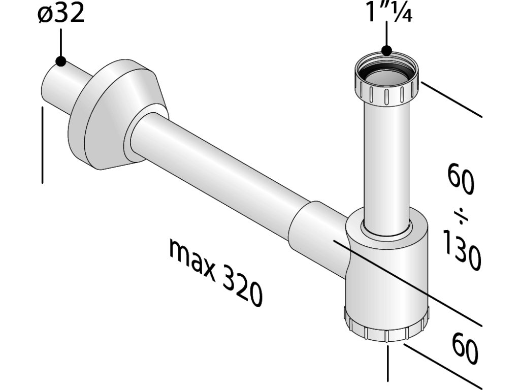 Bruckner CRONO umyvadlový sifon 5/4", DN32, bílá 151.108.0