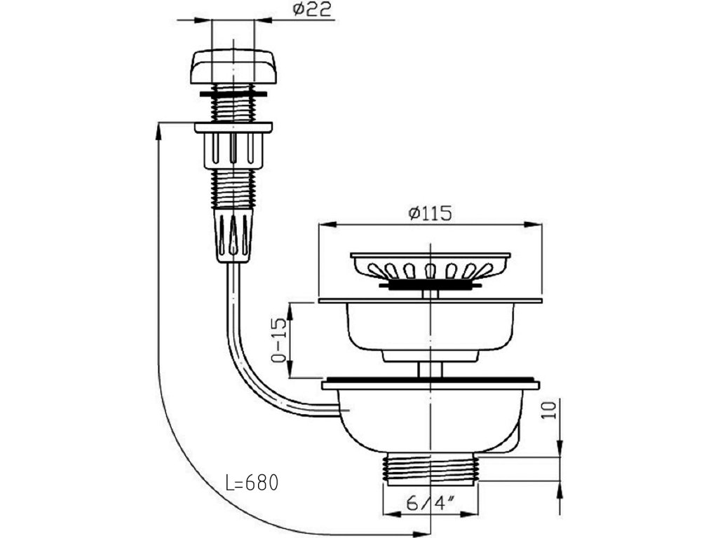Bruckner Dřezová výpust 6/4", s ovládáním, nerez 155.122.0