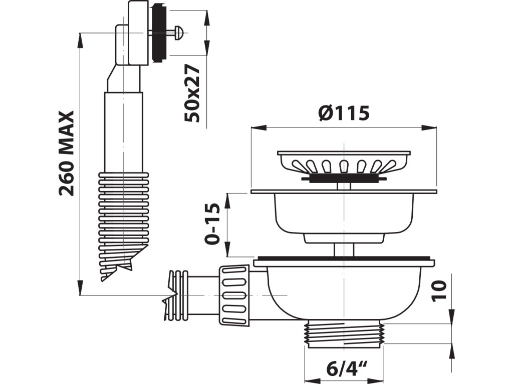 Bruckner Dřezová výpust 6/4", s přepadem, nerez 155.123.0