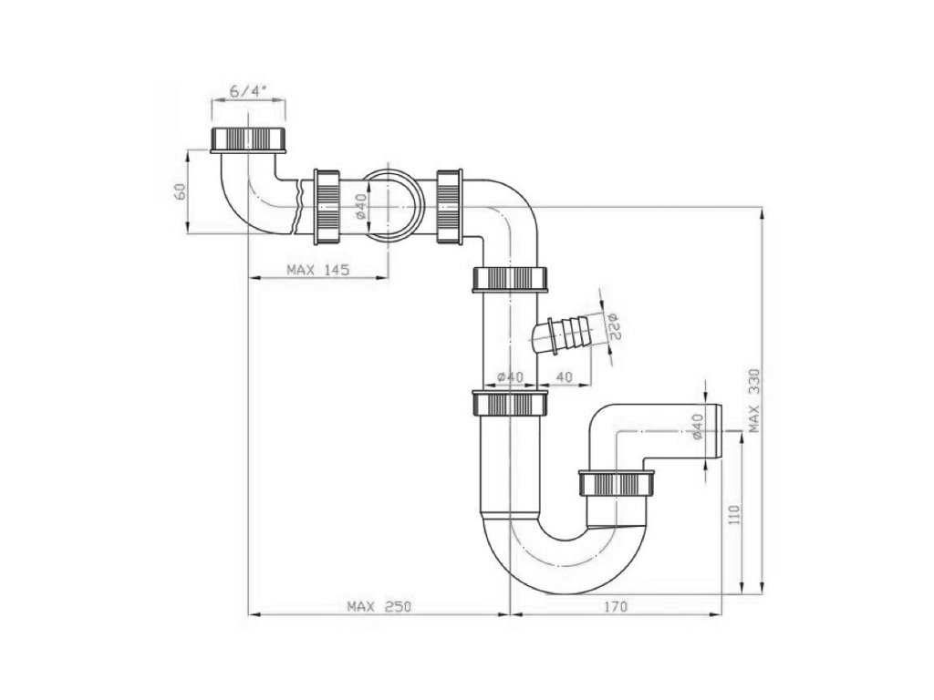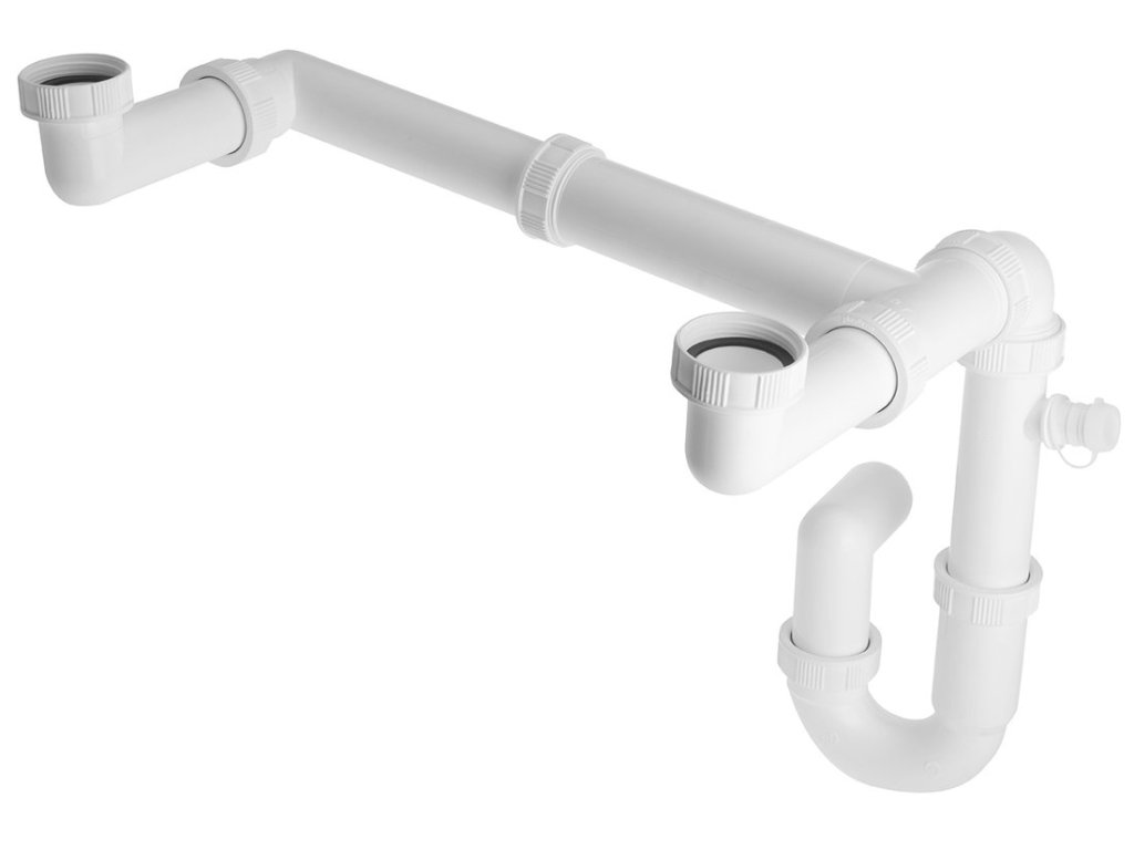 Bruckner Dřezový sifon s odbočkou 6/4", výškově a délkově stavitelný, DN40, bílá 155.132.0