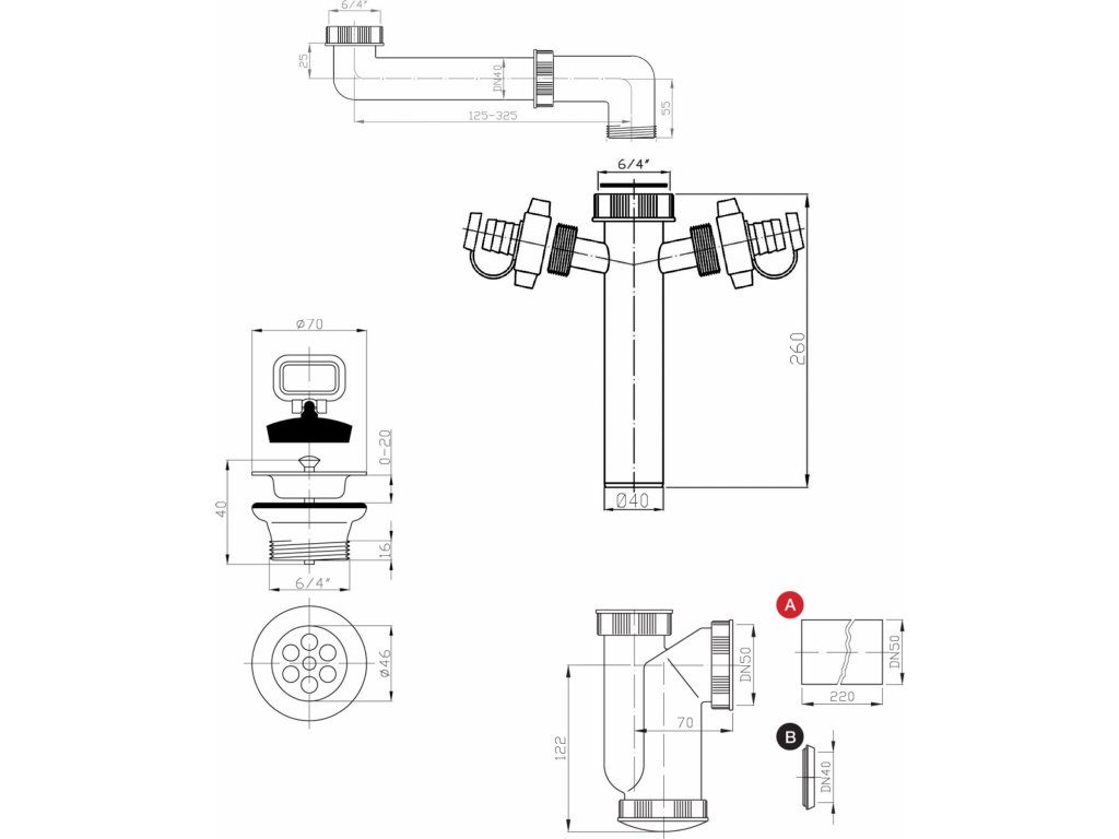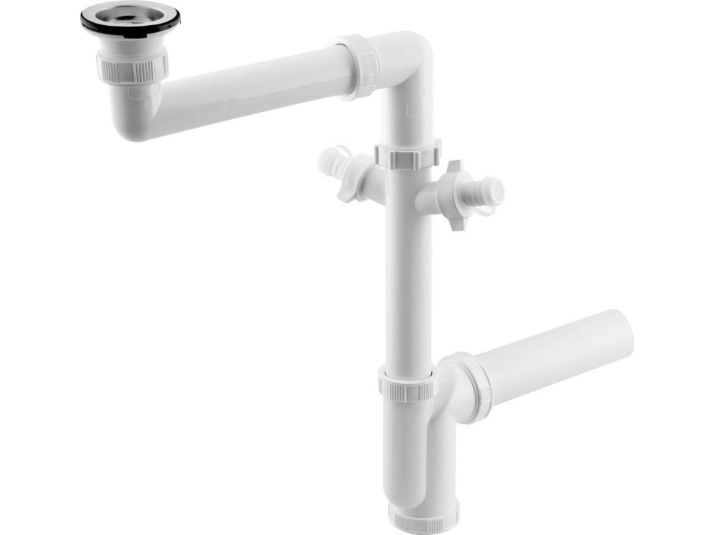 Bruckner Dřezový sifon šetřící místo, 2x odbočka, nerez výpust se zátkou, 6/4", DN40, bílá 155.124.0