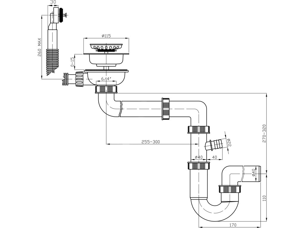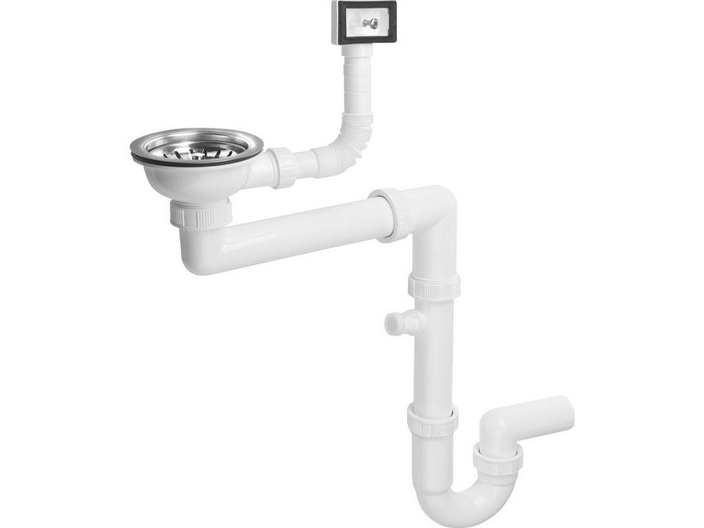 Bruckner Dřezový sifon šetřící místo s přepadem a odbočkou 6/4", včetně pilety, DN40, bílá 155.127.0