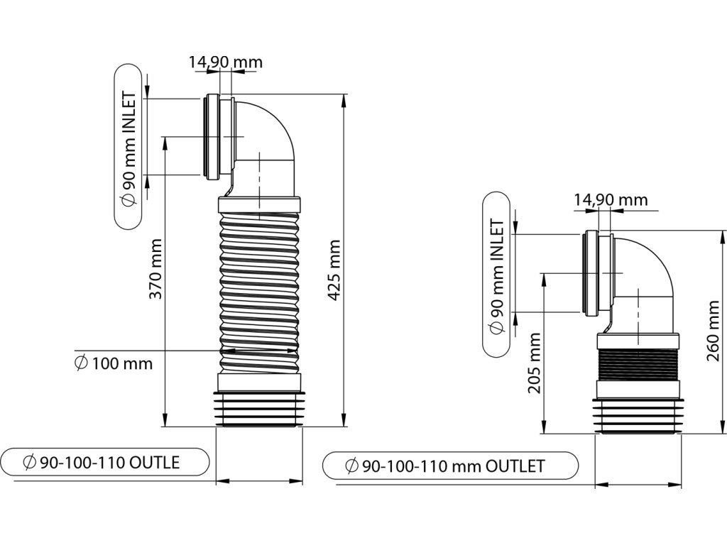 Bruckner Flexi dopojení s kolenem 90° pro závěsné WC, 205-370mm 159.320.0