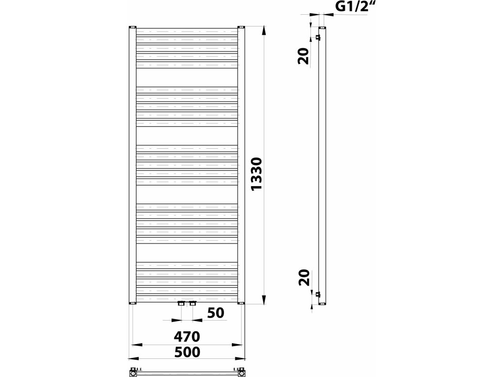 Bruckner GRUNT otopné těleso rovné 500x1330 mm, středové připojení, černá mat 600.122.6