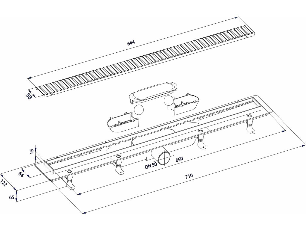 Bruckner Podlahový žlab s nerezovým roštem, L-710, DN50 700.157.2