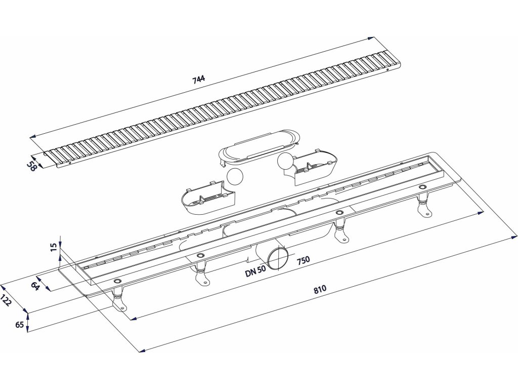 Bruckner Podlahový žlab s nerezovým roštem, L-810, DN50 700.158.2