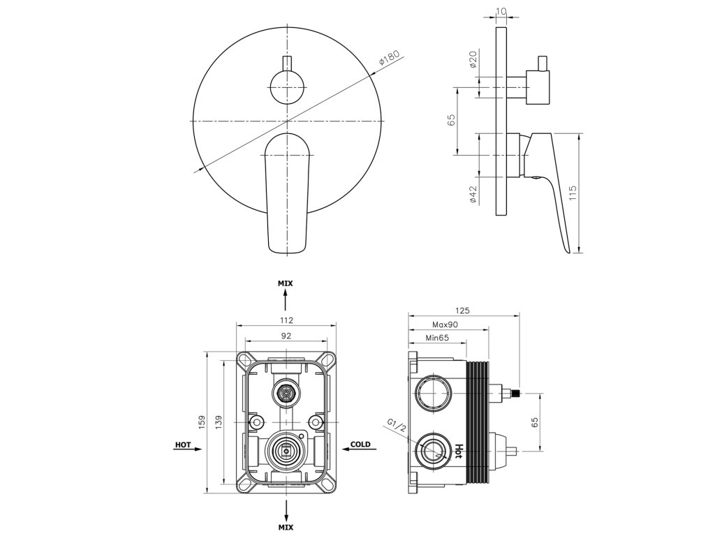 Bruckner SCHMITZ podomítkový sprchový set s pákovou baterií, 2 výstupy, chrom 863.142.1
