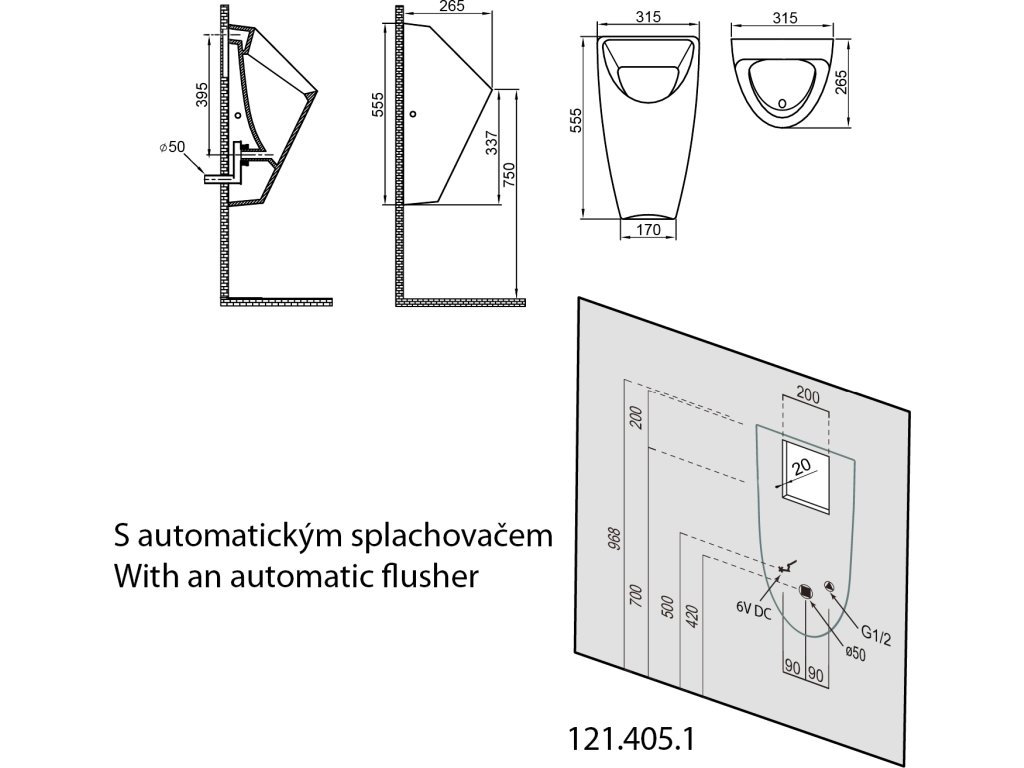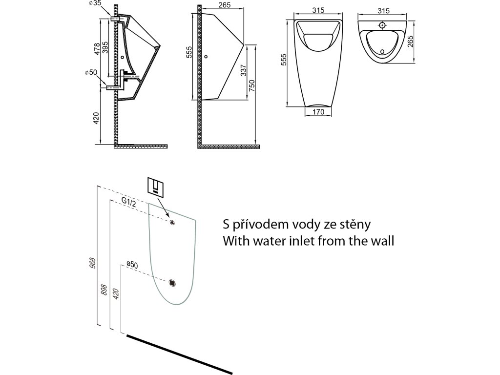 Soubory ke stažení:Pro skryté propojení přívodu k urinálu doporučujeme použít propojovací trubičku průměr 12mm, kompatibilní do manžety pisoáru a se závitem ½″ k nástěnce.