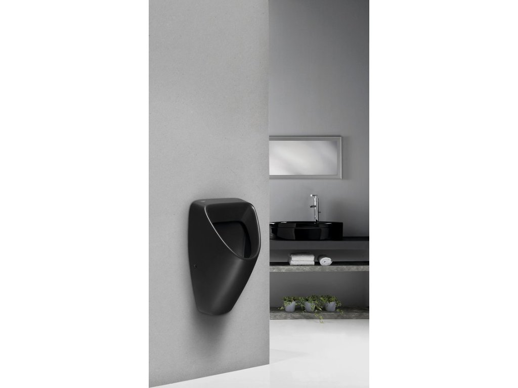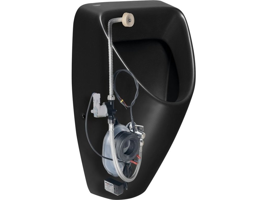 Bruckner SCHWARN urinál s automatickým splachovačem 6V DC, zadní přívod, zadní odpad, černá matná 201.722.6