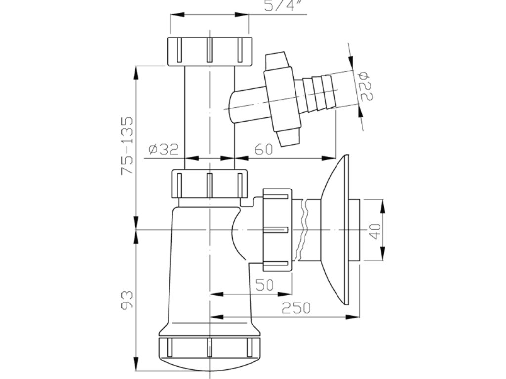Bruckner Umyvadlový sifon s odbočkou 5/4", DN40, bílá 151.110.0