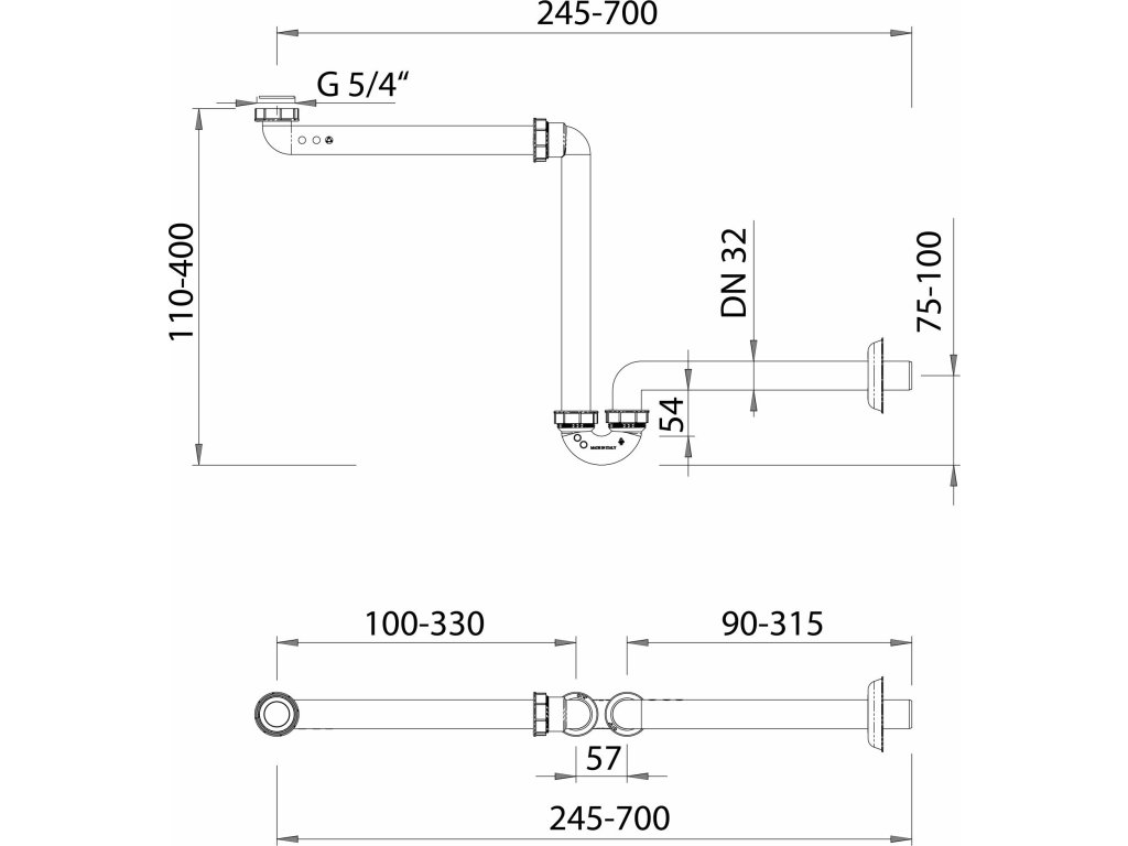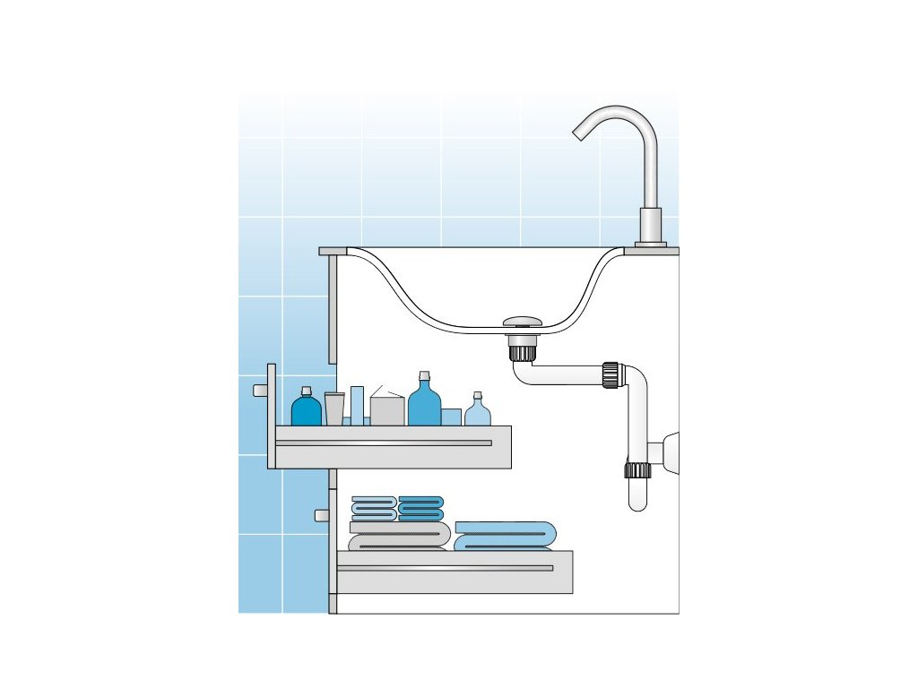 Jedná se o systém, kde trubka těsně pod umyvadlem odvede vodu ke zdi a teprve tam ji odvádí svisle dolů. Toto řešení je vhodné například do koupelnového nábytku, kdy sifon nebrání využití police/zásuvky, pro umyvadla s policí nebo k umyvadlům pro tělesně handicapované.