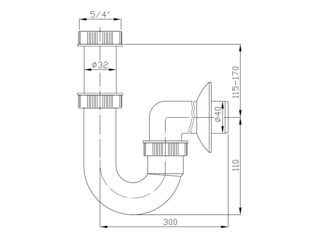 Bruckner Umyvadlový U sifon 5/4", DN40, bílá 151.107.0