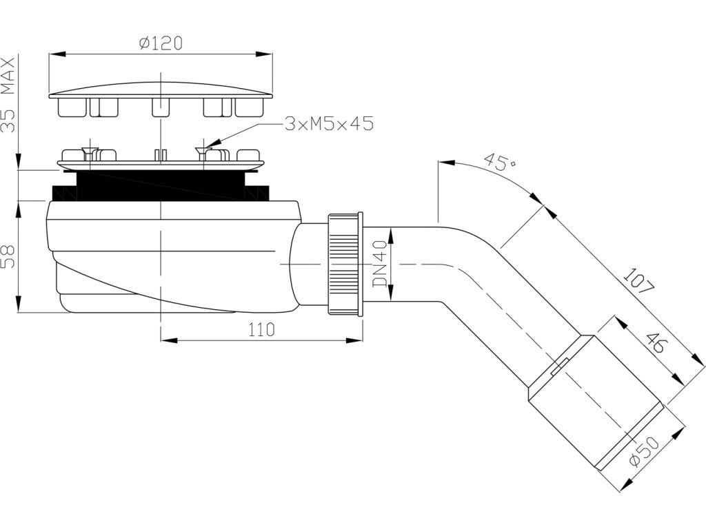 Bruckner Vaničkový sifon nízký, průměr 90mm, DN40/50, krytka nerez lesk 162.940.3