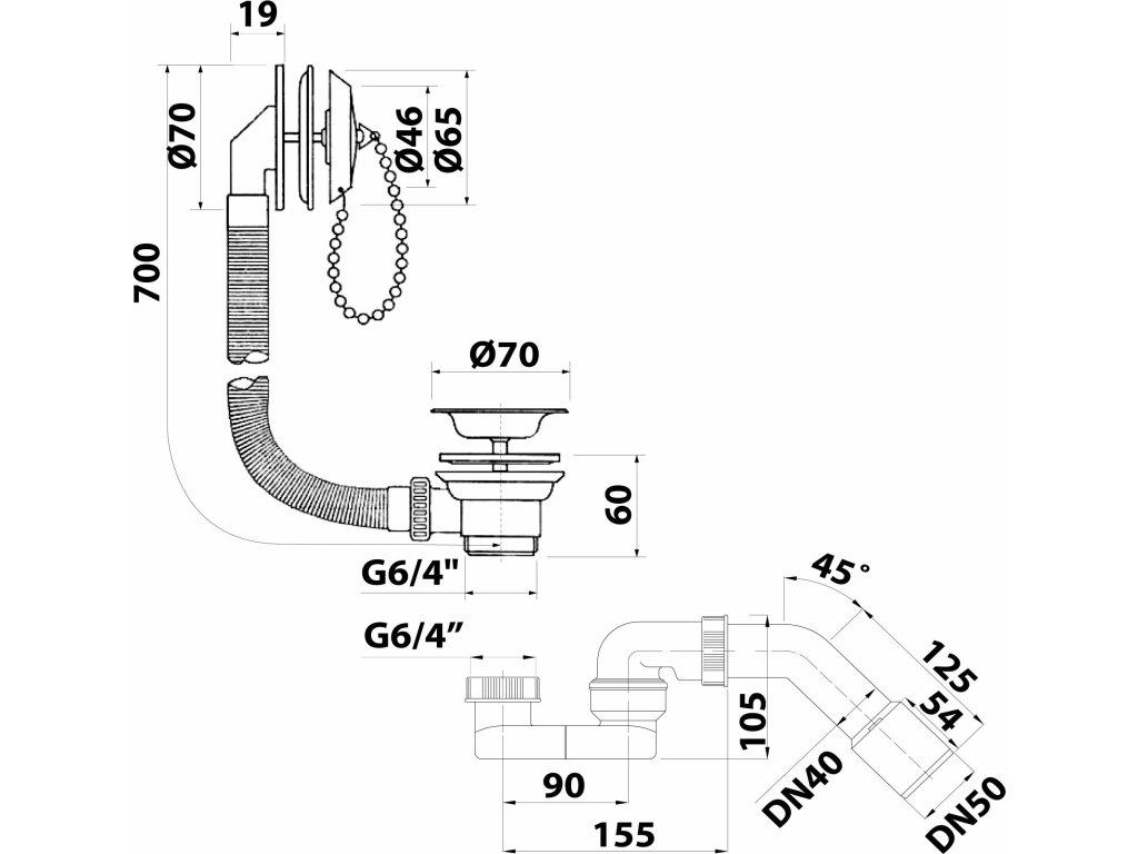 Nízký vaničkový sifon, určený pro všechny typy sprchových vaniček, které mají otvor pro sifon o ø 90 mm
