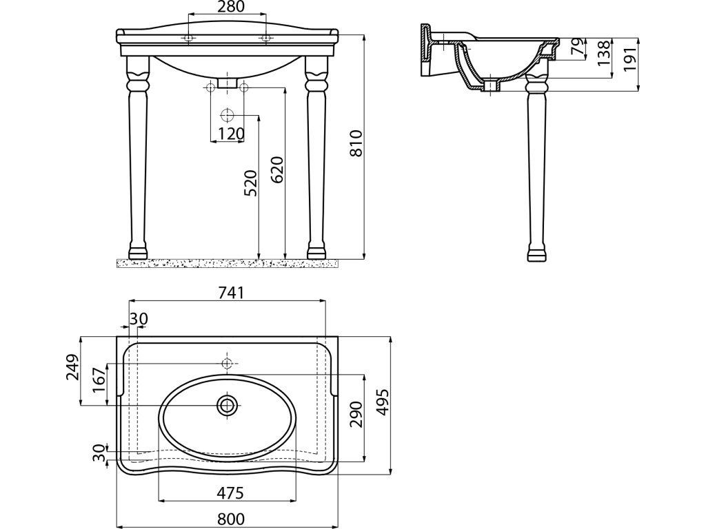 CREAVIT ANTIK keramické umyvadlo 80x50cm, bílá AN080