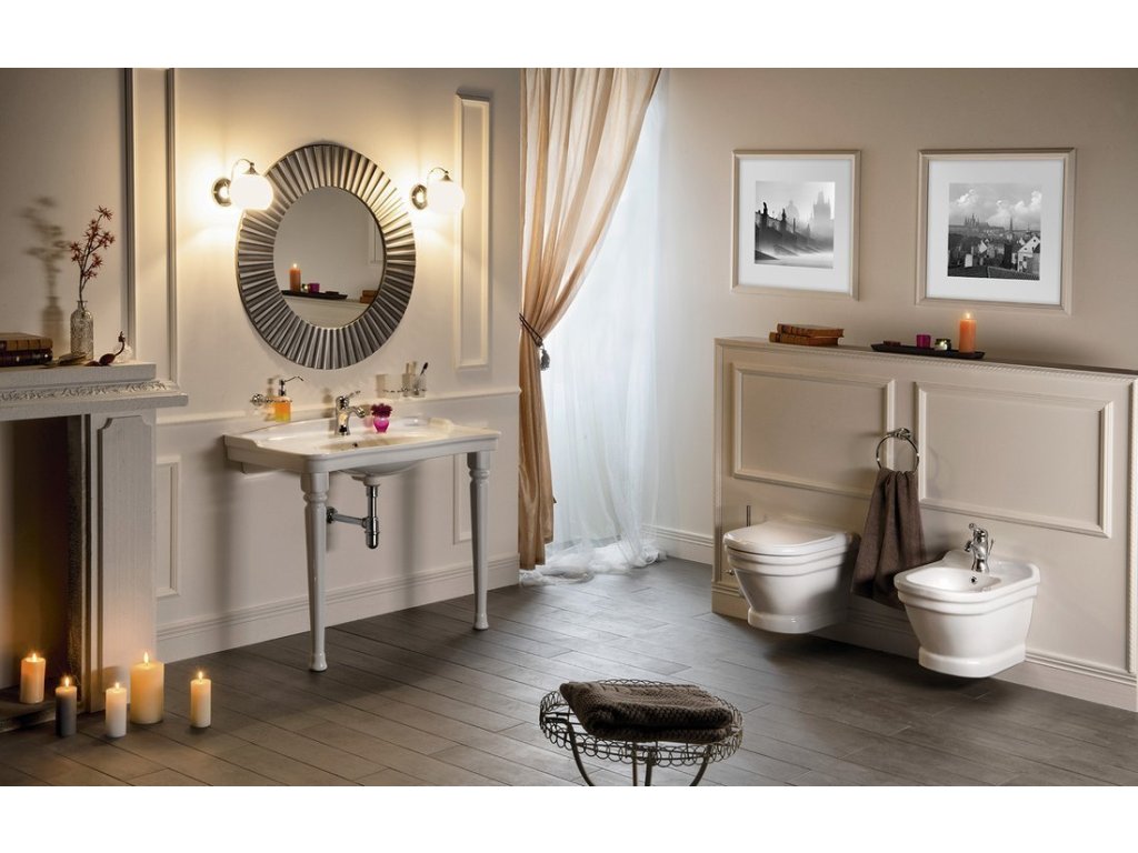 K retro umyvadlům a bidetu doporučujeme vodovodní baterie ze série Antea. V balení WC mísy a WC kombi není obsaženo WC sedátko, je potřeba koupit samostatně.