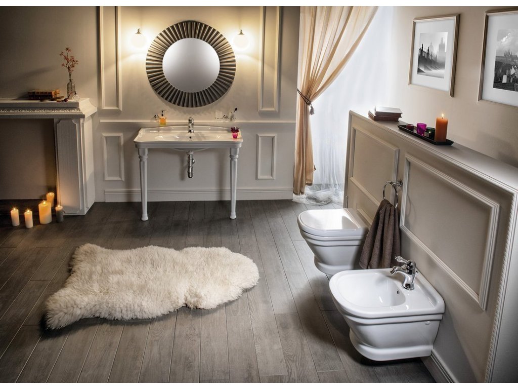 Série sanitární keramiky ANTIK v retro stylu zaujme elegantními liniemi. Obsahuje praktická umyvadla s odkladnými plochami pro použití jako nástěnná nebo doplněná podpěrnými nohami, závěsné WC, bidet a WC kombi.
