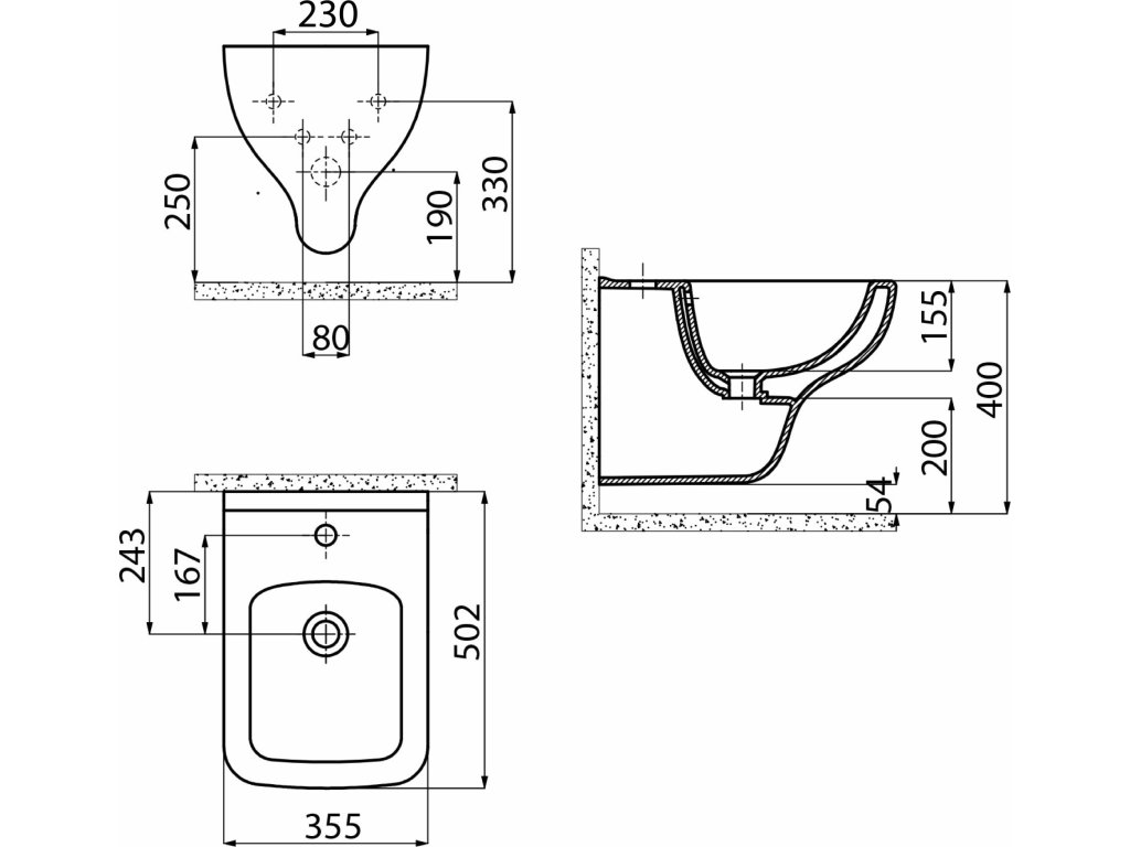 Sapho PACO bidet závěsný, 36x52cm, bílá PZ2012