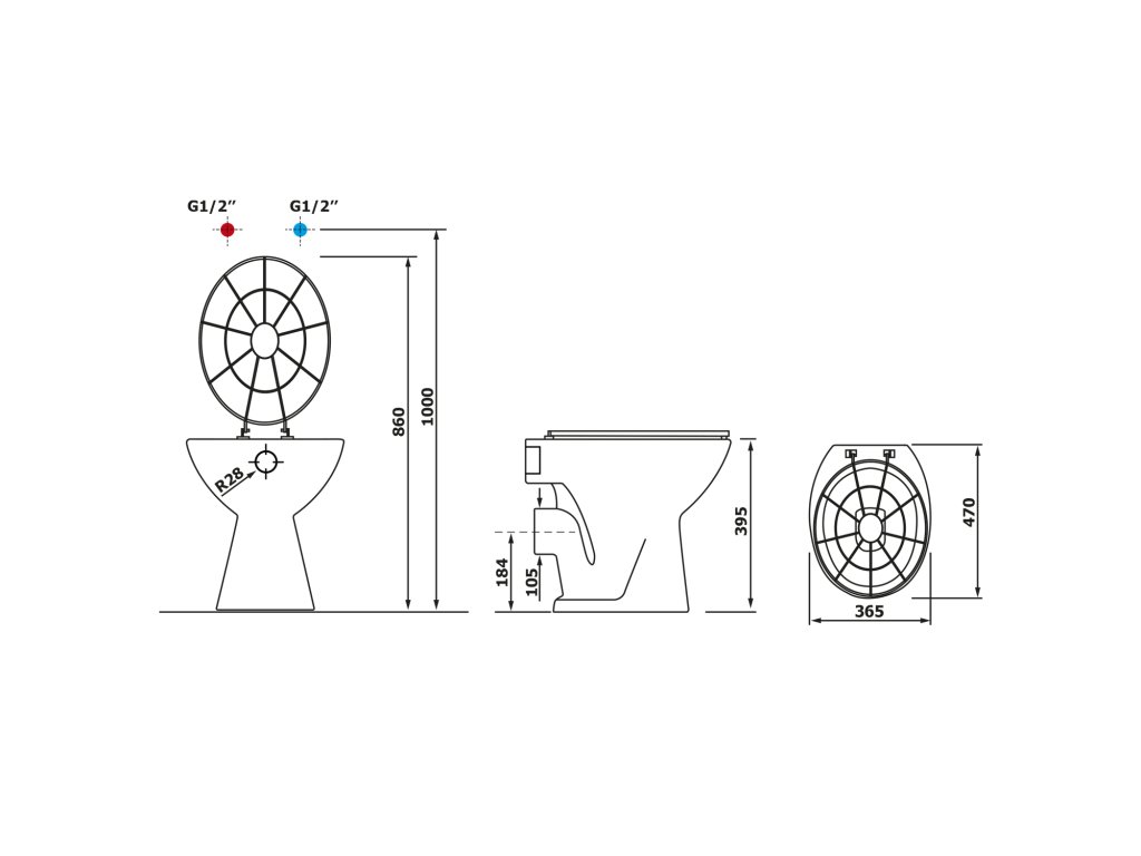CREAVIT Výlevka stojící keramická s roštem 36x54 cm, spodní odpad, bílá VKS01