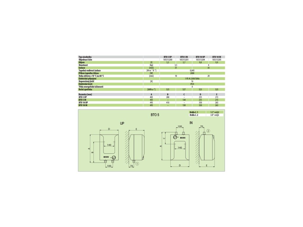 Dražice BTO 5 IN elektrický beztlakový ohřívač vody pod odběrné místo