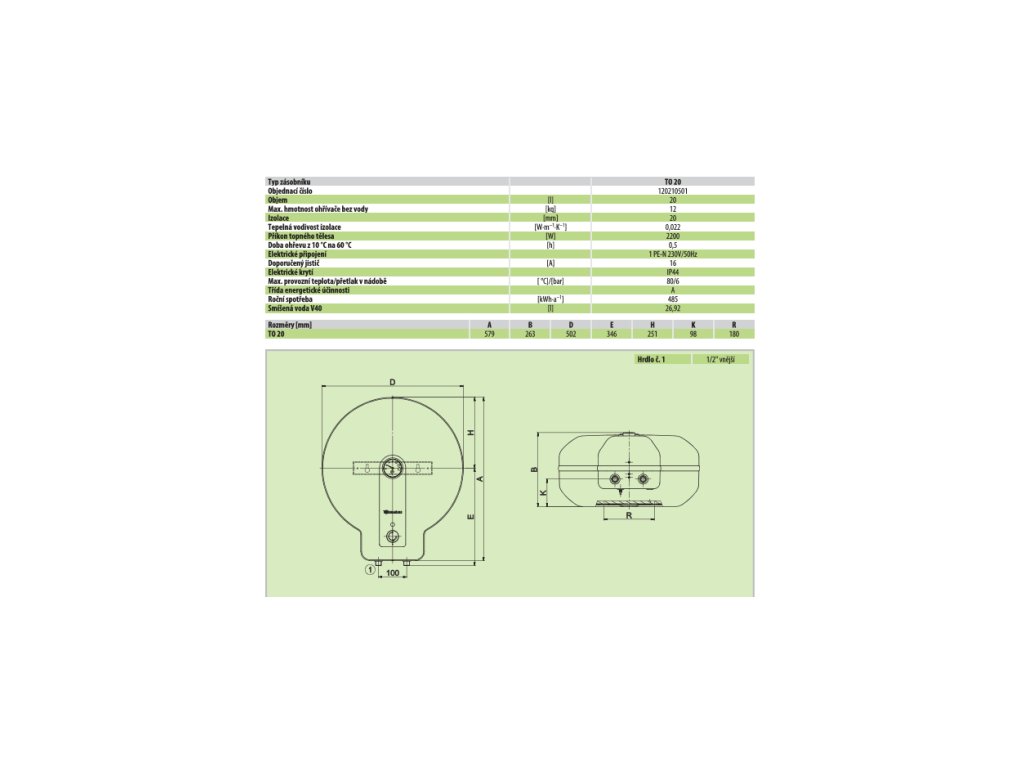 Dražice TO-20.1 elektrický ohřívač vody závěsný